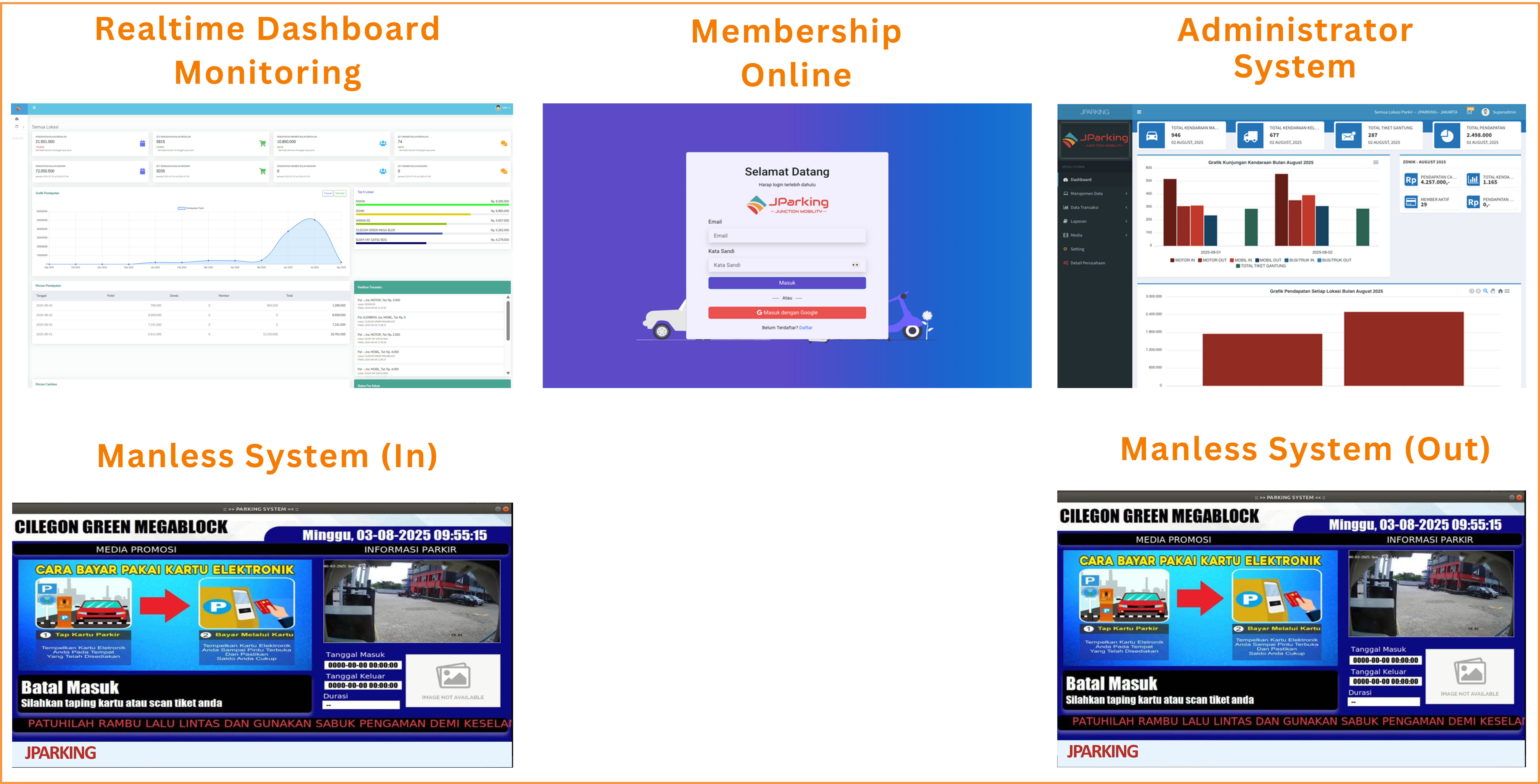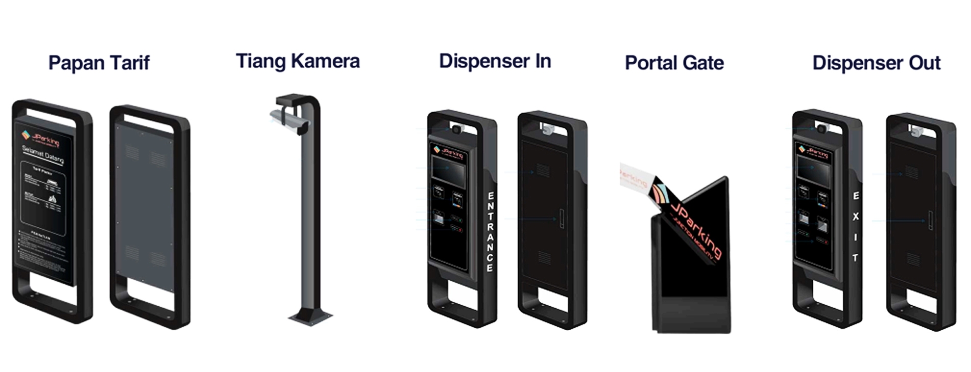 JParking menyediakan Perangkat pendukung lainnya Parkir modern berbasis teknologi yang terintegrasi untuk memberikan pengunjung, layanan dan pengalaman parkir yang menyenangkan, efisien, aman, dan cepat