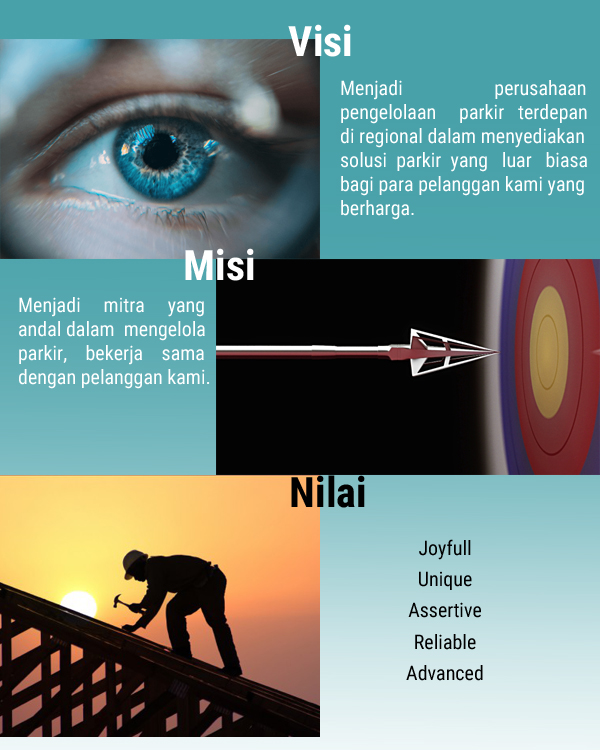 Menjadi perusahaan pengelolaan parkir terdepan di regional dalam menyediakan solusi parkir yang luar biasa bagi para pelanggan kami yang berharga.